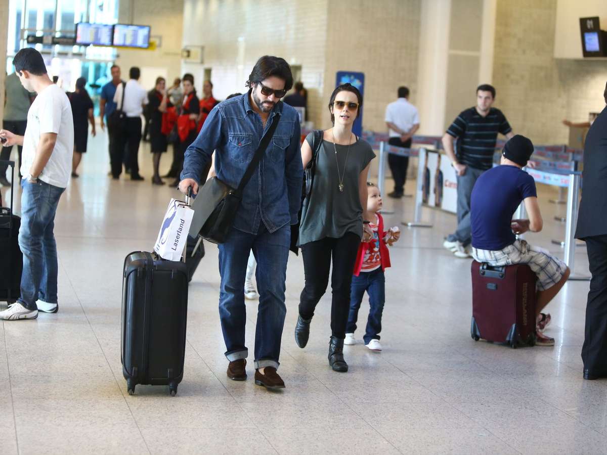 A atriz Débora Falabella foi clicada caminhando com o namorado, o também ator Murilo Benício, e a filha, Nina, nesta quinta-feira (28), no aeroporto Santos Dumont, no Rio de Janeiro