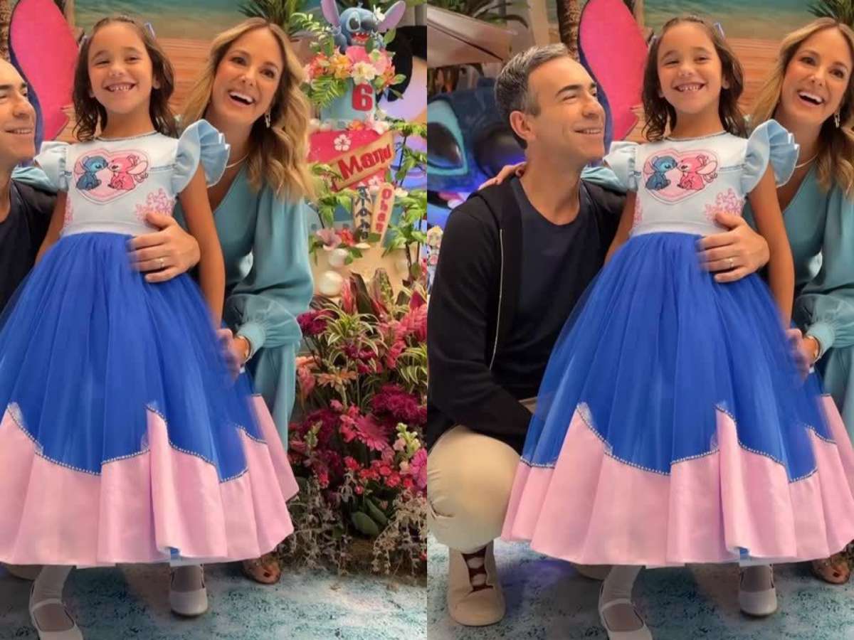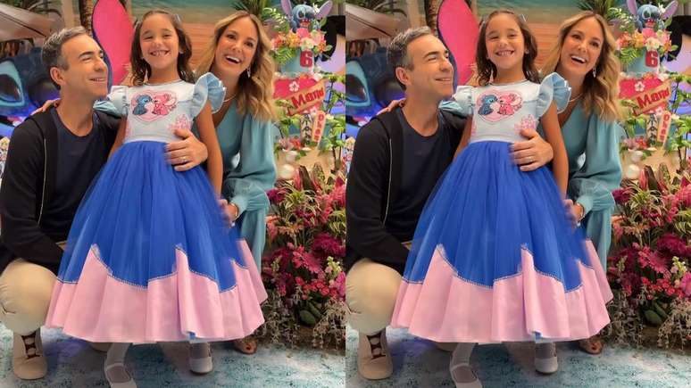 Cesar Tralli e Ticiane Pinheiro realizaram uma festa para comemorar os 6 anos de sua filha Manuella nesta quarta-feira (13) em São Paulo. O evento, que aconteceu em um buffet na capital paulista, reuniu amigos e familiares com decoração inspirada no personagem Stitch. A menina completou 6 anos oficialmente em 12 de julho.