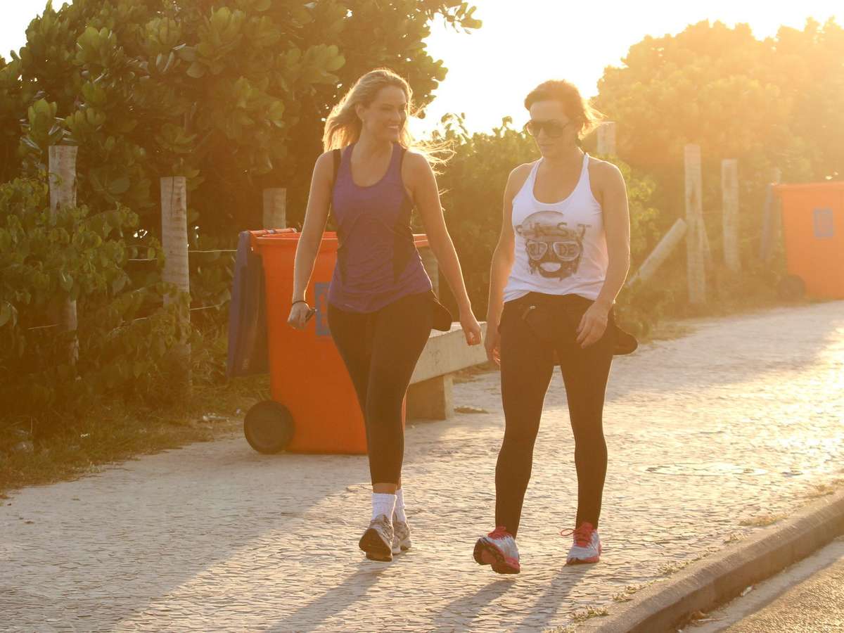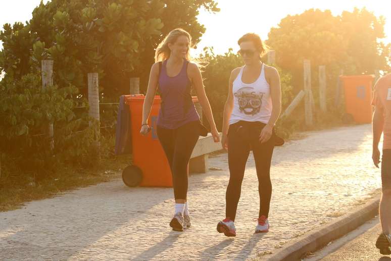 Veja Ellen Roche caminhando com amiga em orla de praia carioca