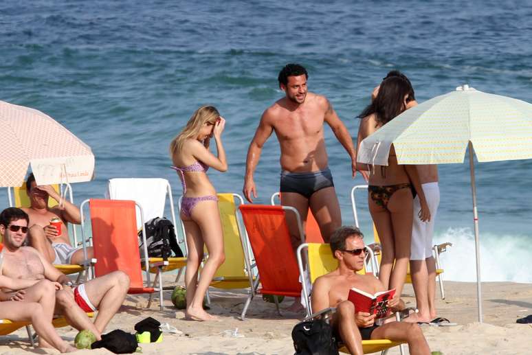 Fred curtiu tarde de sol ao lado dos amigos na praia do Leblon