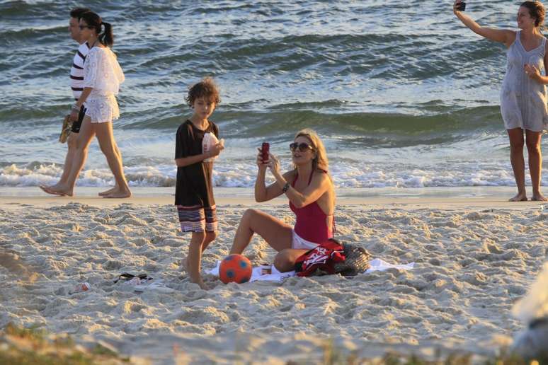 A atriz Christine Fernandes aproveitou o feriado da Proclamação da República, nesta sexta-feira (15), para curtir o dia com o filho, Pedro, 10 anos, na praia da Barra da Tijuca, zona oeste do Rio de Janeiro