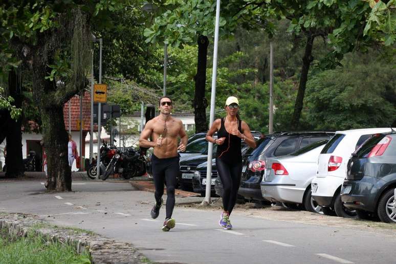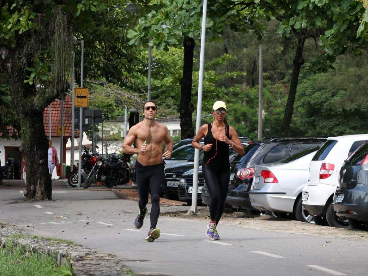 Flávia Sampaio, namorada de Eike Batista, aproveitou o calor para correr na lagoa Rodrigo de Freitas, no Rio de Janeiro, nesta sexta-feira (8). A empresária foi clicada ao lado de um homem musculoso, que aparentou ser seu personal trainer