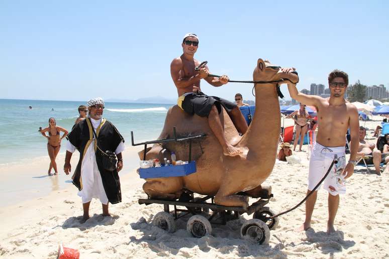 Anderson Di Rizzi e Daniel Rocha se divertiram na praia da Barra da Tijuca, zona oeste do Rio de Janeiro, nesta quinta-feira (30). Bem humorados, os dois atores atenderam a vários fãs que os abordaram, além de posarem com um carrinho em forma de camelo de um vendedor ambulante