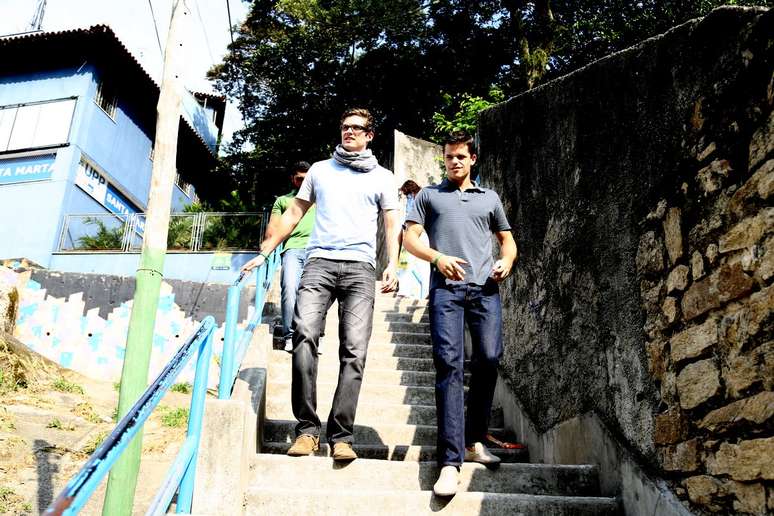 Atores da série norte-americana 'Teen Wolf', Max Carver e Daniel Sharman estão no Brasil e aproveitaram para visitar a comunidade Dona Marta, no Rio de Janeiro, na sexta-feira (17). Com um grupo de amigos, os dois andaram de bondinho e jogaram bola com crianças da região