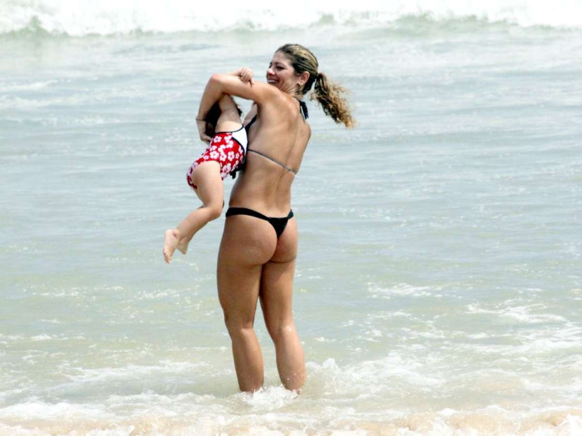 A ex-paquita Catia Paganote aproveitou a tarde ensolarada desta quinta-feira (20) para curtir a praia da Barra da Tijuca, na zona oeste do Rio de Janeiro, com a filha, Valentina, de 2 anos