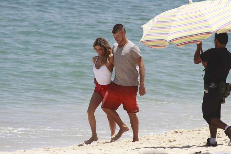 Fernanda Lima e Rodrigo Hilbert realizaram uma gravação na praia da Macumba, zona oeste do Rio de Janeiro, nesta quinta-feira (9). Com um visual descolado, os dois apareceram sentados embaixo de um guarda-sol e também caminhando pela areia