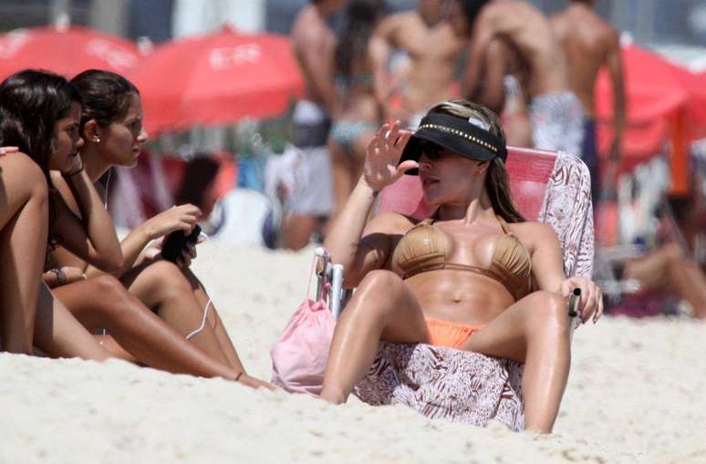 A modelo Joana Machado aproveitou a ensolarada tarde desta quarta-feira (19) para curtir com os filhos a praia do Leblon, na zona sul do Rio de Janeiro