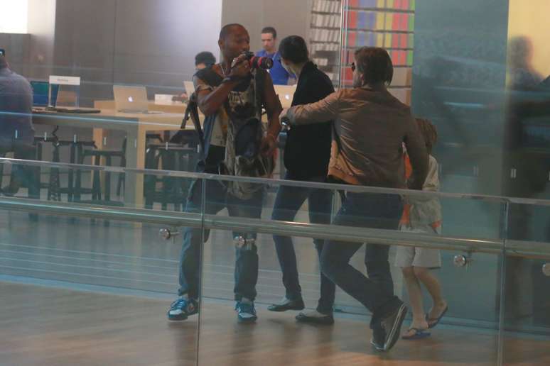 Murilo Rosa se estressou com um paparazzo nesta segunda-feira (14), em um shopping na Barra da Tijuca, zona oeste do Rio de Janeiro. Acompanhado da mulher, a modelo Fernanda Tavares, e do filho, o ator se estressou quando foi clicado pelo fotógrafo e resolveu tirar satisfações