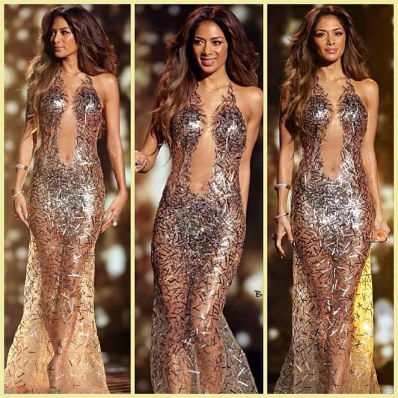 Nicole Scherzinger chamou atenção na noite do último domingo (15) durante a final do The X Factor UK. A cantora e modelo usou um vestido decotado e com bastante transparência na ocasião. O modelo foi criado pela estilista Julian MacDonald