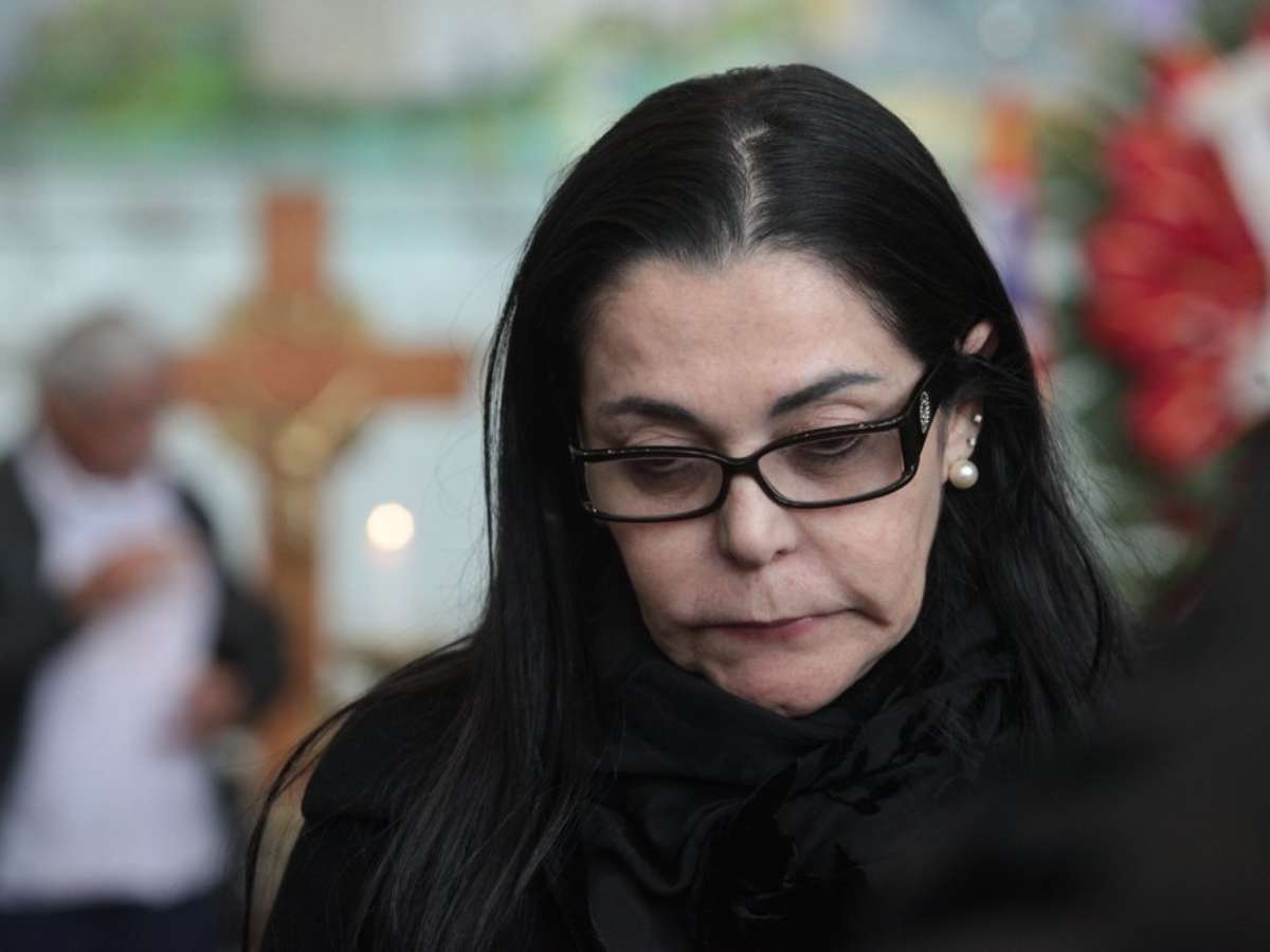 O corpo de Dominguinhos foi velado nesta quarta-feira (24) na Assembleia Legislativa de São Paulo. O cantor morreu nessa terça-feira (23), após lutar por mais de seis anos contra um câncer de pulmão e desde dezembro estava internado com pneumonia e arritmia cardíaca. Na foto, a mulher do músico, Guadalupe Mendonça