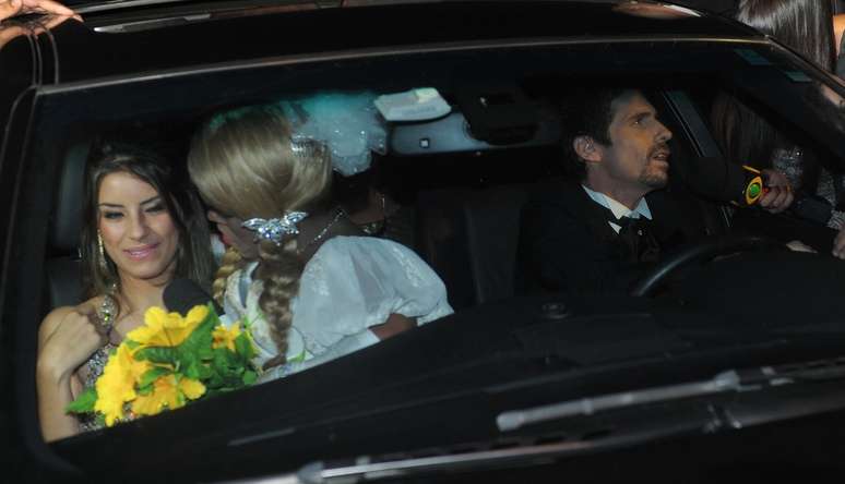 Diversos conhecidos nomes do entretenimento nacional, principalmente do universo da música sertaneja, compareceram ao casamento do cantor Edson, da dupla Edson & Hudson, com Andrea Nunes, na noite desta terça-feira (11), em casa de eventos em São Paulo; na foto, Gusttavo Lima e a noiva, Andressa Suita