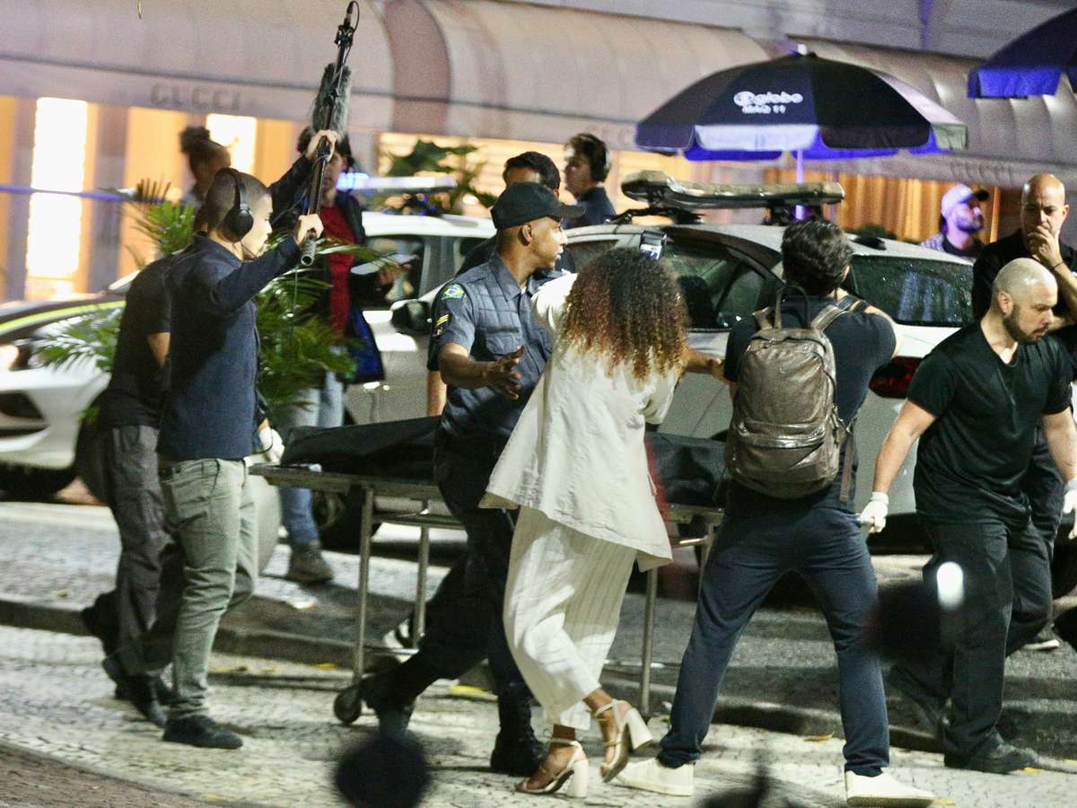 Registros das gravações mostram o momento em que o corpo de Odete está sobre uma maca, envolto em um saco preto. Nas imagens, a vilã aparece sendo levada por bombeiros.