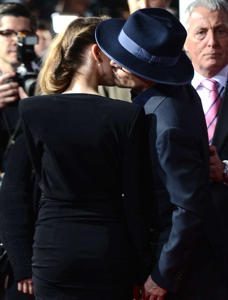 Acostumado a manter a discrição de seu relacionamento, o casal Johnny Depp e Amber Heard exibiu um momento de raro carinho em público durante a première do longa 3 Days to Kill, na quarta-feira (12), em Hollywood, Califórnia. O longa é estrelado pela atriz de 27 anos - mais de duas décadas mais jovem do que o astro, de 50