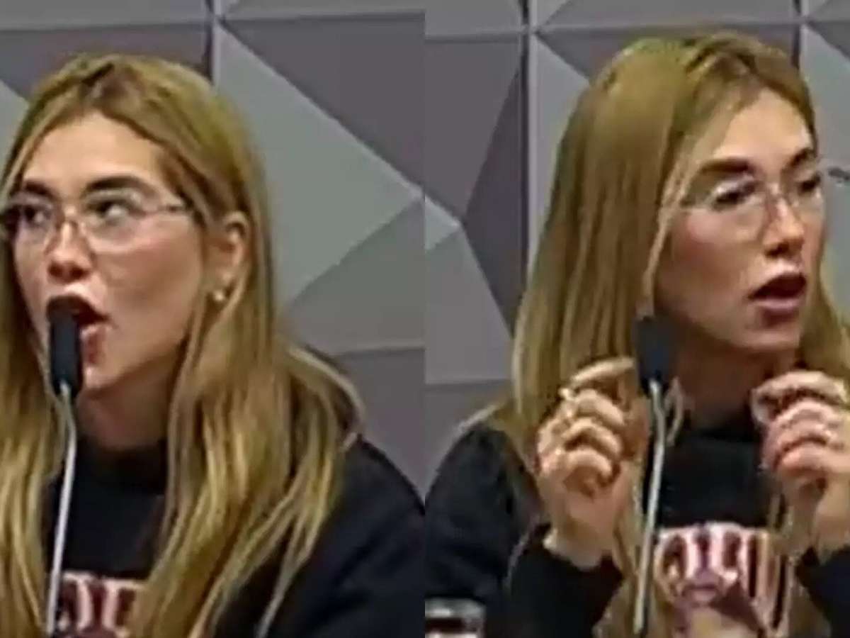 Influenciadora Virginia Fonseca confunde microfone com canudo de copo durante CPI; veja o vídeo do momento