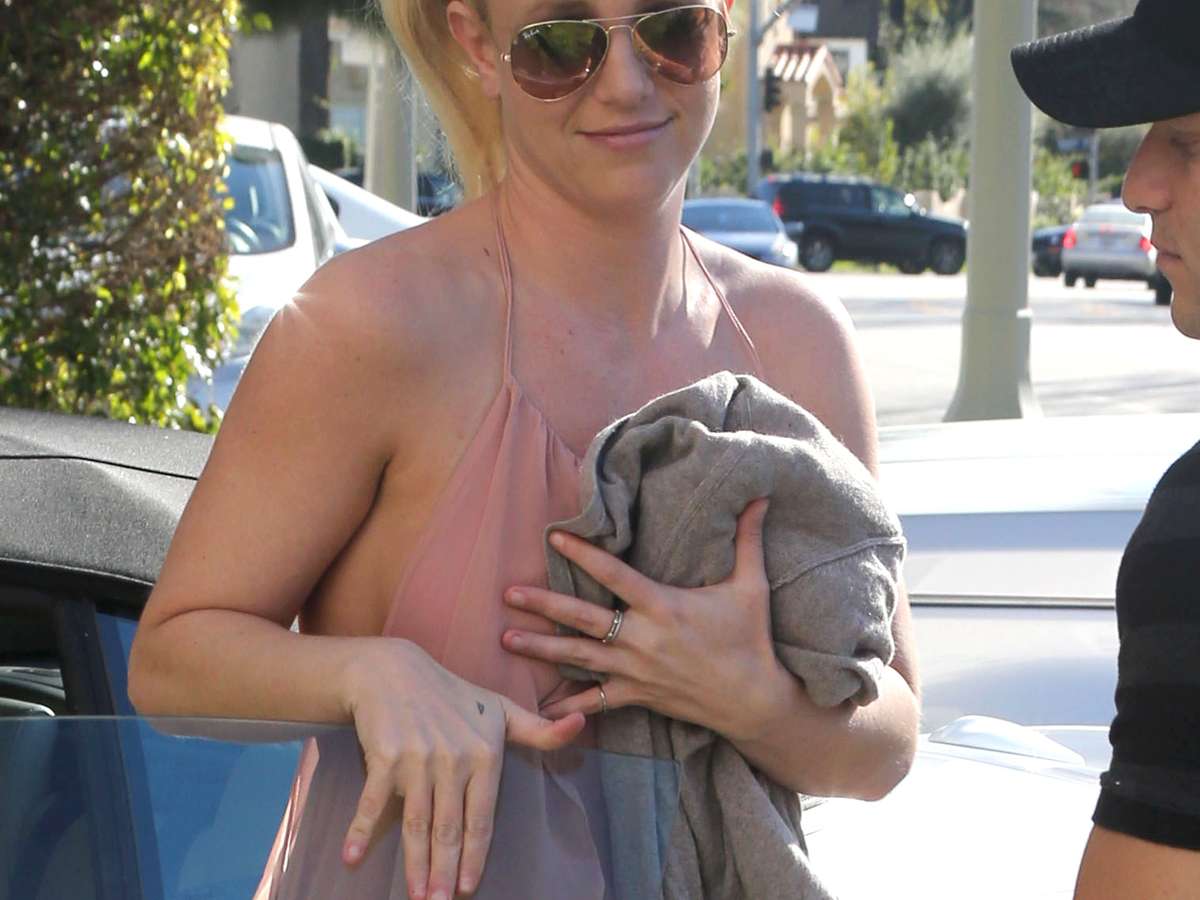 A cantora Britney Spears foi novamente clicada após o rompimento do noivado com o empresário Jason Trawick, anunciado há menos de dez dias. No sábado (19), paparazzi fizeram imagens da artista de 31 anos na chegada a um luxuoso hotel da cidade de Los Angeles, Califórnia, com um visual bastante despojado: vestido rosa de tecido leve, bota de salto alto e um caprichoso decote - sem sutiã. Nas fotos, ela também aparece sem o anel de noivado que ganhou do ex, avaliado em US$ 90 mil