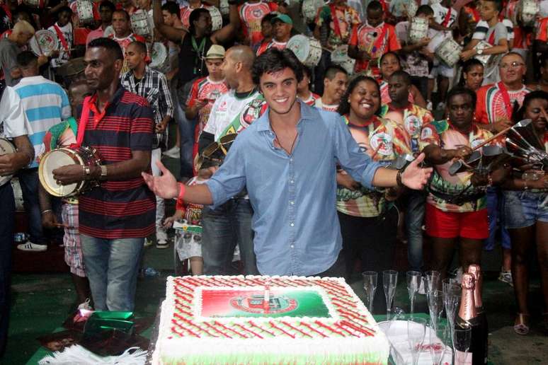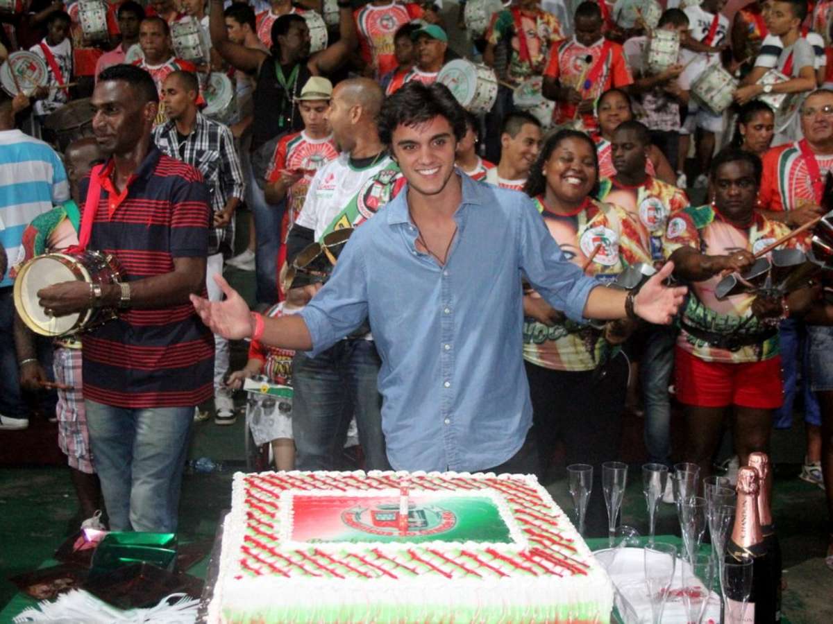 Os atores Rodrigo Simas e Bruno Gissoni comemoraram, ao lado da família, o aniversário do irmão Felipe Simas, na noite de sábado (26), na quadra da escola de samba Grande Rio, na região central do Rio de Janeiro. Na foto, com o pai, Beto Simas (o segundo à esquerda), e a atriz Daniela Escobar (segunda à direita)