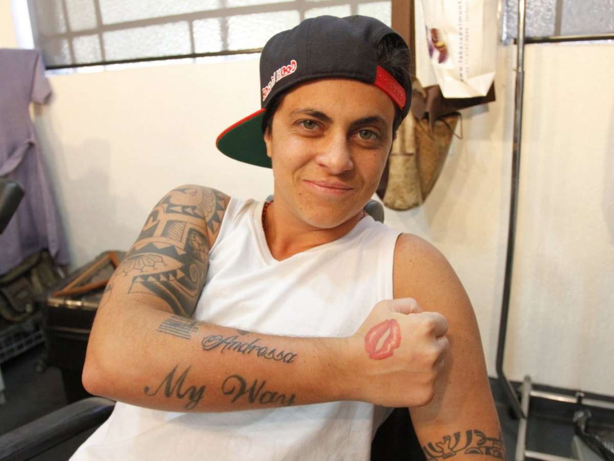Thammy Miranda decidiu registrar na pele o amor que sente pela namorada, a modelo Andressa Ferreira, e tatuou em seu braço o nome da amada, nesta terça-feira (29). Esse é o segundo desenho que a atriz faz em homenagem a Andressa - o primeiro foi um beijo na mão