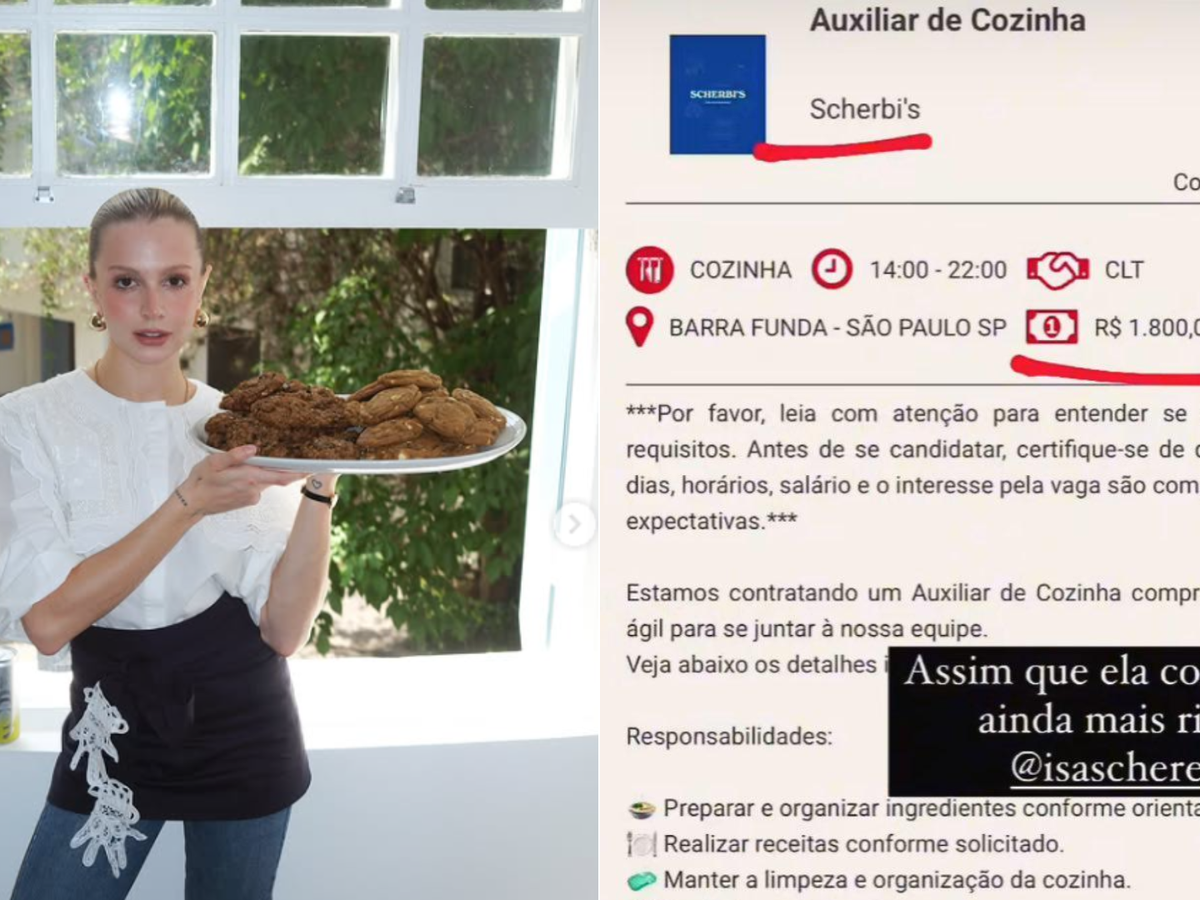 A vaga também pedia disponibilidade para horários flexíveis, incluindo finais de semana e feriados. "Estamos em busca de um(a) auxiliar de cozinha para se juntar à nossa equipe! Se você é uma pessoa organizada, responsável e apaixonada por confeitaria, venha fazer parte da Scherbi's! Preparar e organizar ingredientes, realizar receitas conforme solicitado, manter a limpeza e organização da cozinha e executar outras tarefas relacionadas à cozinha. Disponibilidade para horários flexíveis, incluindo finais de semana e feriados", dizia o anúncio.