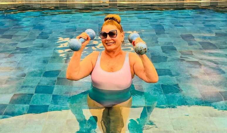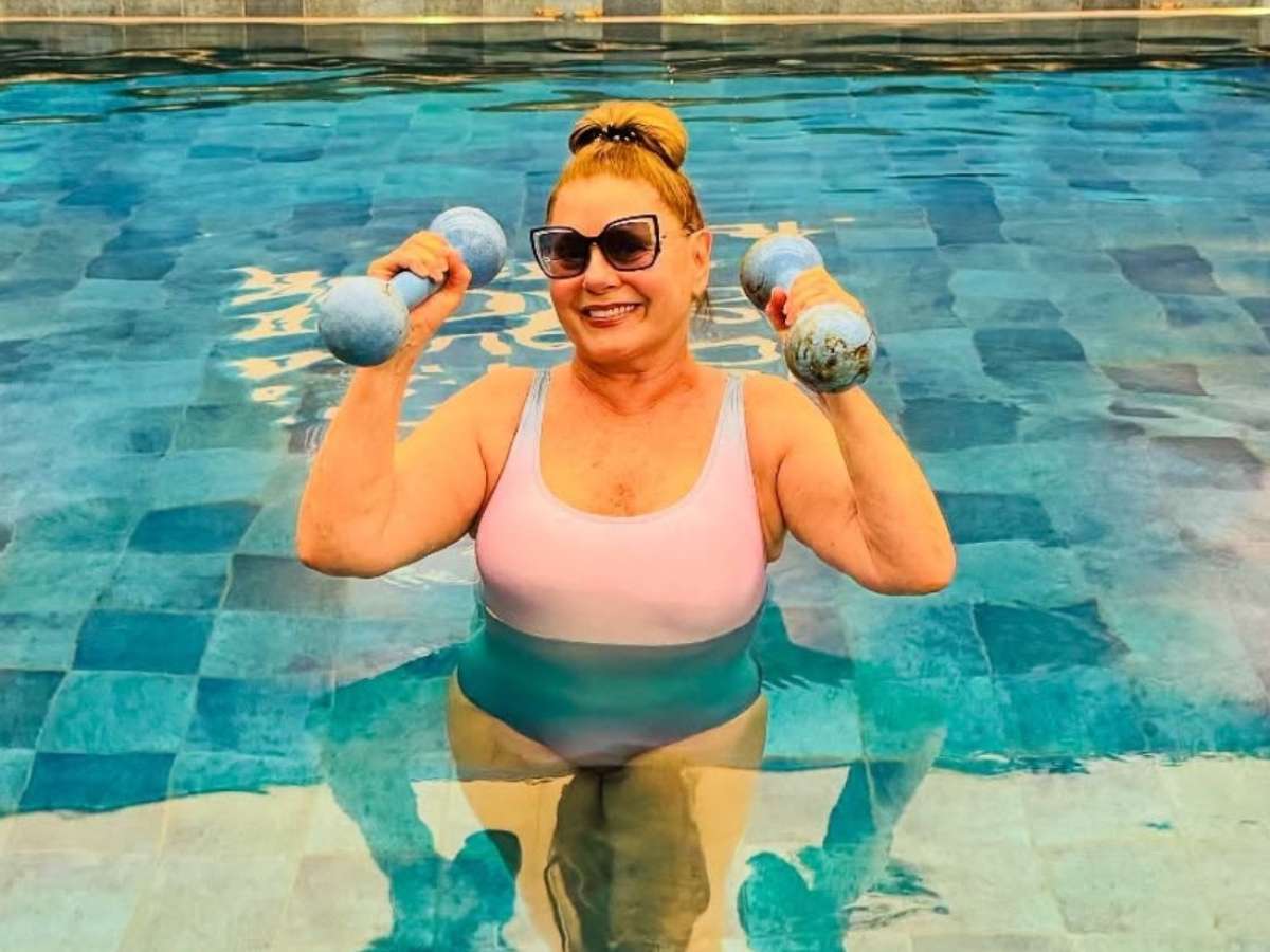 "Meus queridos, vou falar um pouco da minha fisioterapia aquática. No processo de envelhecimento, o corpo vai sofrendo transformações que podem ser desaceleradas, se você fizer exercícios frequentemente", escreveu ela na legenda de uma publicação onde aparecia na beira de uma piscina.