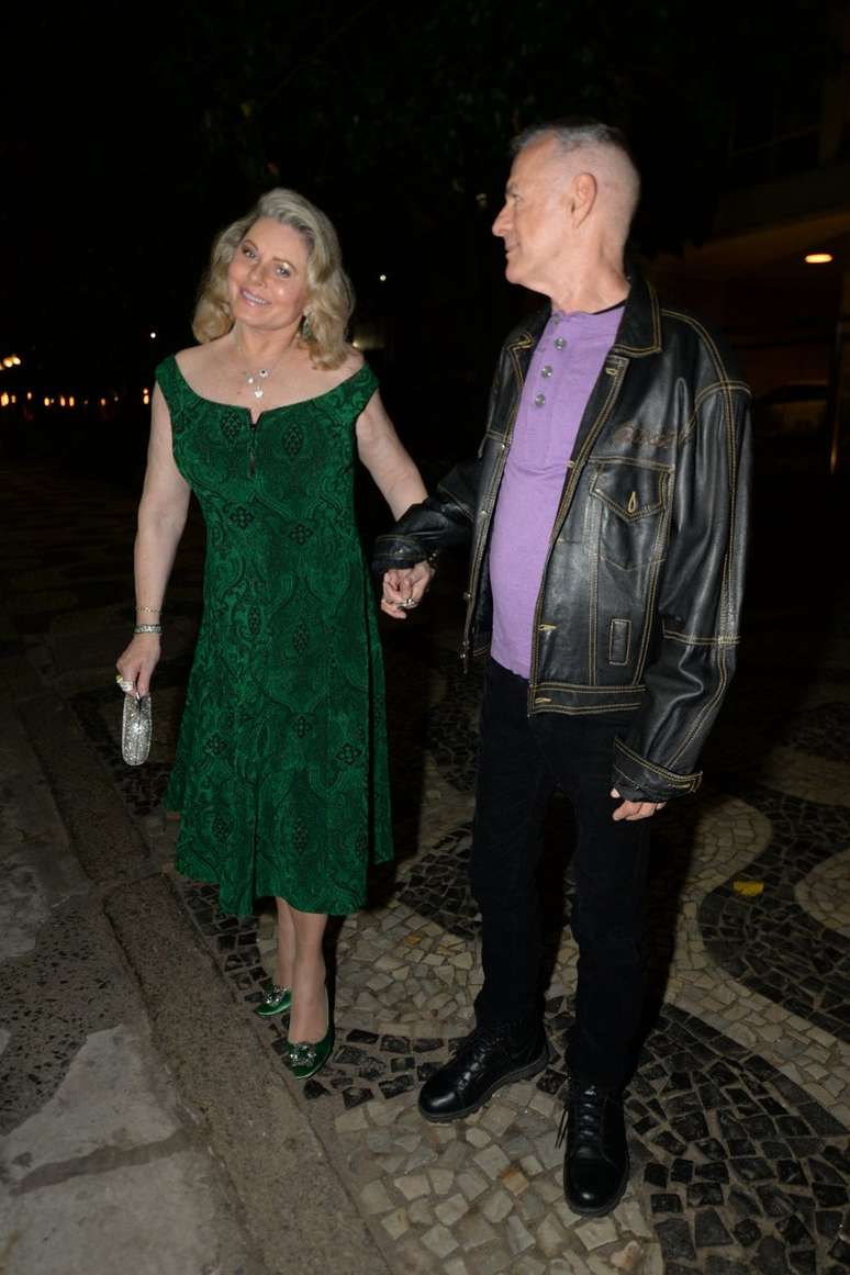 A atriz Vera Fischer estava entre o time de famosos que esteve no aniversário de 10 anos de casamento da promoter Liège Monteiro com Luiz Fernando Coutinho, na noite do último sábado (30), em Ipanema, no Rio de Janeiro. Aos 62 anos, ela chegou a festa sorridente usando um vestido verde de veludo. Ela combinou sapato da mesma cor e abusou dos detalhes em prata nos acessórios.