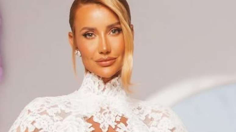 Influenciadora Ana Paula Siebert escolhe vestido branco luxuoso para renovar os votos de casamento com Roberto Justus