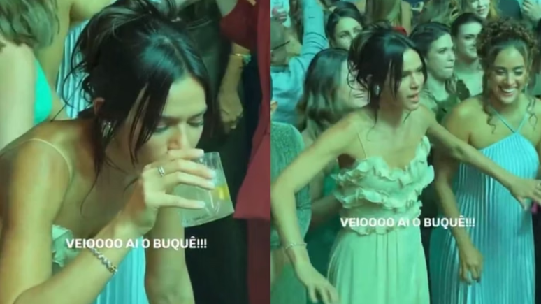 Vídeo: Bruna Marquezine viraliza na web ao surgir disputando buquê do casamento de Gi Lancellotti