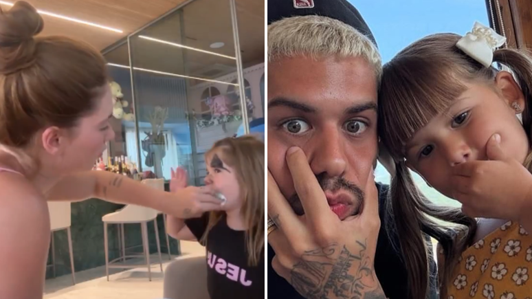 Durante um momento de diversão em casa, Maria Alice, filha mais velha de Virginia Fonseca e Zé Felipe, surpreendeu a mãe com um pedido especial. Enquanto a influenciadora fazia pinturas faciais na menina, a pequena pediu que o pai fosse vê-la após seu compromisso profissional. "Pede o papai para quando ele acabar de fazer o show dele vir aqui me dar um abraço", disse a menina, de quase 5 anos, demonstrando carinho pelo cantor.