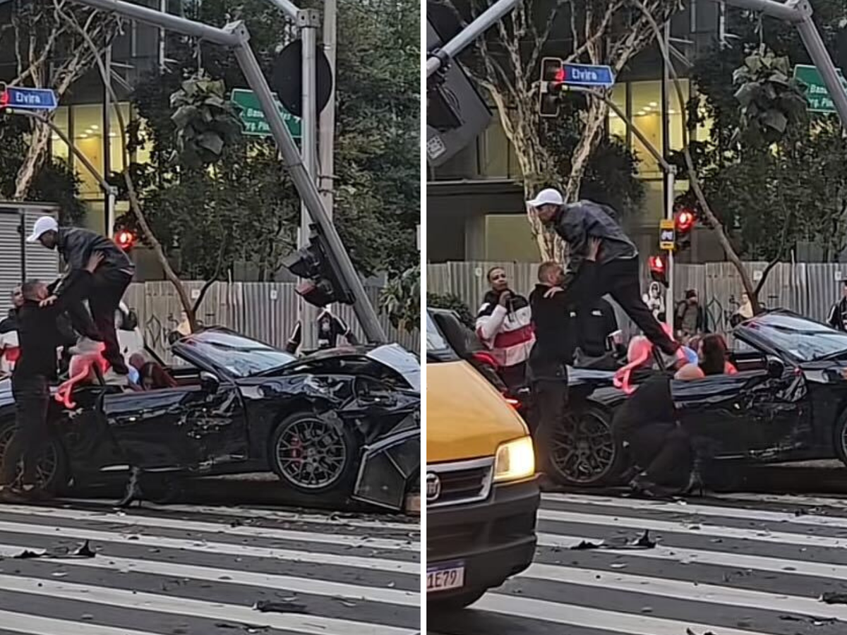 O influenciador digital Samuel Sant’anna, conhecido como Gato Preto, aparece em novas imagens subindo em seu carro destruído e discutindo com a vítima, Edilson Maiorano. O momento aconteceu logo após ele furar o sinal vermelho e bater contra um outro veículo, na quarta-feira, 20, em São Paulo.