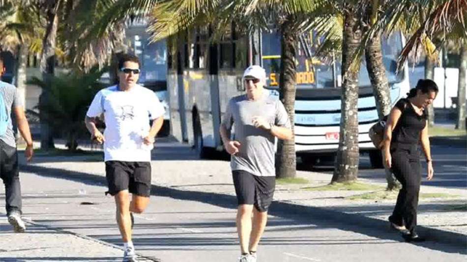 Famosos Luciano Huck corre em praia do RJ ao lado de personal trainer Exibir comentários Compartilhar Aos 40 anos, Luciano Huck mantém a boa forma correndo; apresentador não desanimou nem mesmo com a temperatura de 30° Reprodução Publicidade