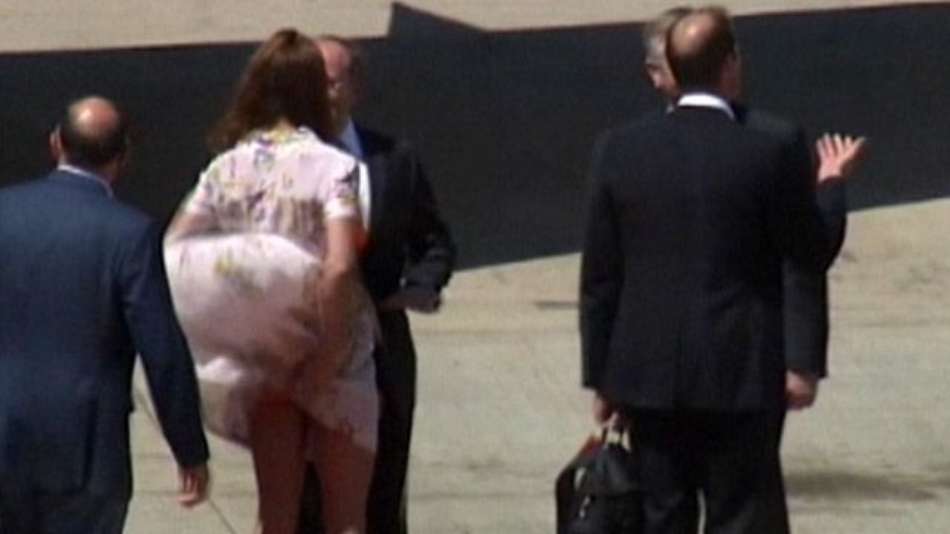 Famosos Vento levanta vestido de Kate Middleton; veja Exibir comentários Compartilhar Duquesa estava no aeroporto de Brisbane, na Austrália, onde ela e o marido embarcaram de volta para casa após viagem pela Ásia Reuters Publicidade