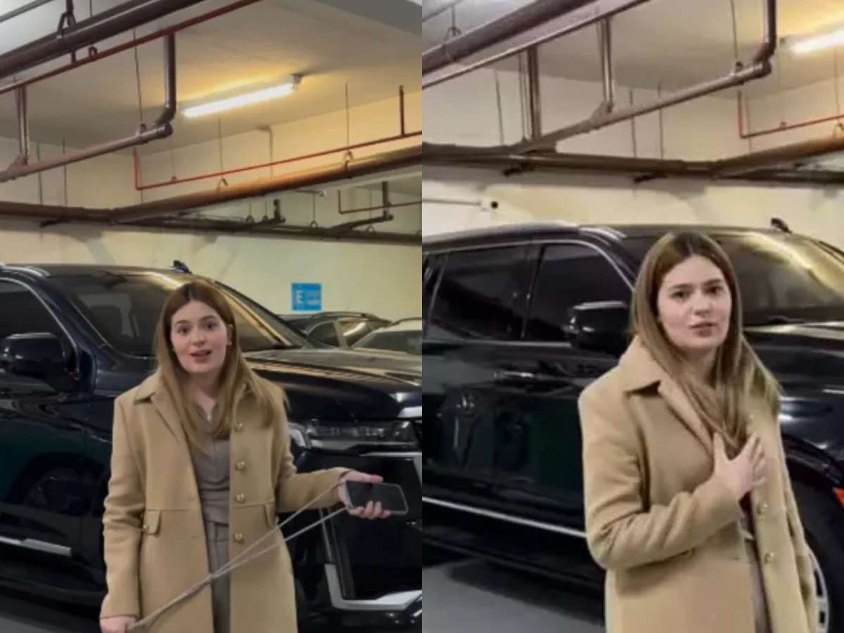 Viih também brincou falando que chega a desaparecer ao lado do carro. A diferença é tão grande que ela revelou que precisa de um degrau para subir no carro, de tão alto que ele é.