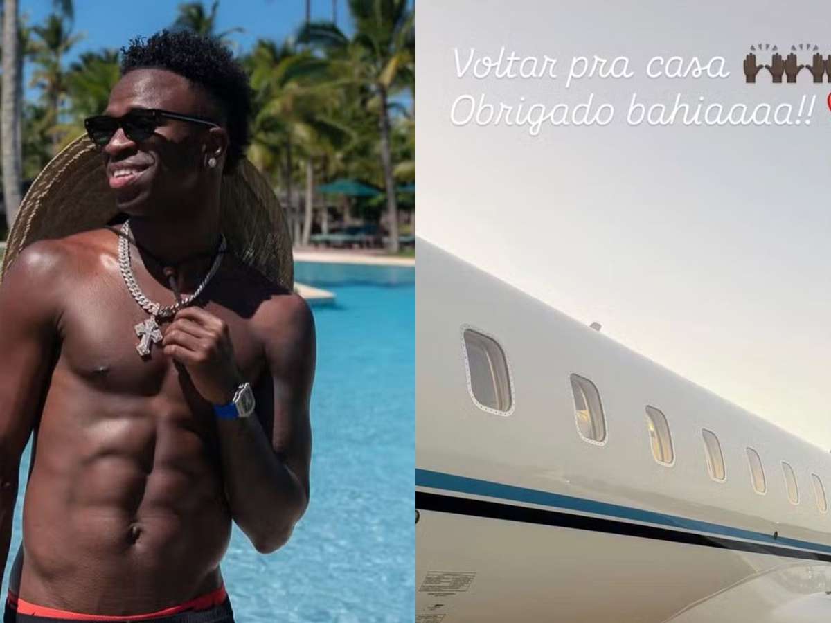 Vini Jr. volta à Espanha em jato de luxo fretado após férias na Bahia ao lado de Virginia; saiba o valor