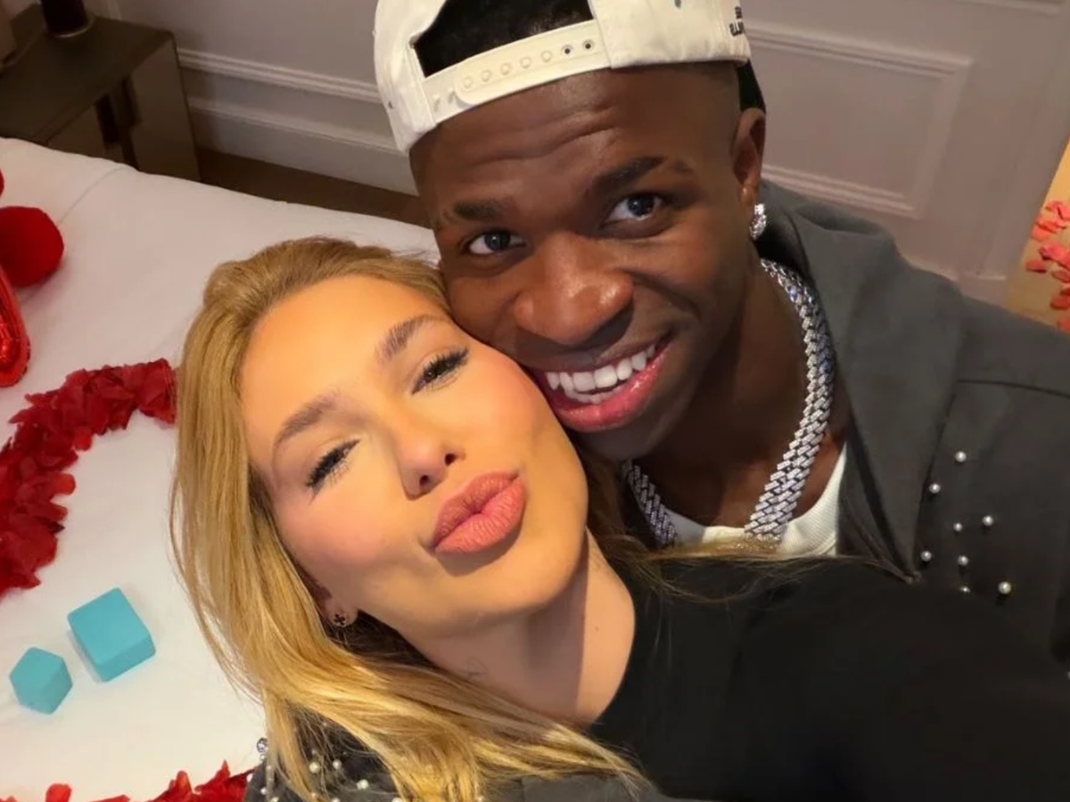 No final de novembro, o casal completou um mês de namoro, marcado por uma surpresa romântica. Sobre o gesto, ela compartilhou: "Hoje acordei sendo mimada pelo meu amor. Primeiro mês de muitos que virão, se Deus quiser! Te amo". Já Vini Jr., em uma carta carinhosa, escreveu: "Vi, é o primeiro de muitos pela frente! Espero que esteja sendo feliz, assim como você está me fazendo! Te amo e saudades".