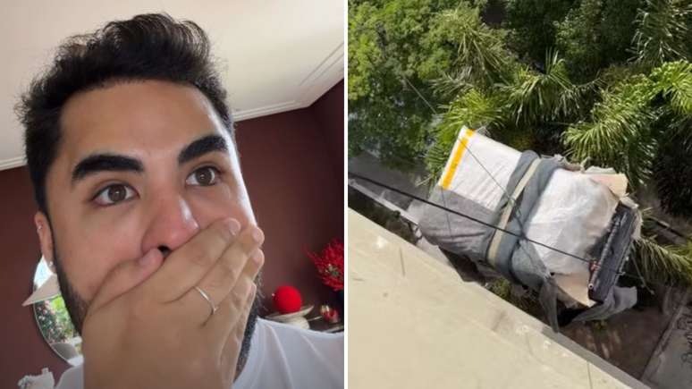 Ao fim, o amigo da influencer contou como foi o perrengue para receber o presente: "Passou no elevador de serviços, mas não passou na porta do meu apartamento. Tipo, faltou isso aqui, ó, para passar e não passou. Aí teve que guiçar ela. E o que me impressiona mais é ela caber direitinho no único espaço que tinha. Deus é bom! Ele te dá vitória!".