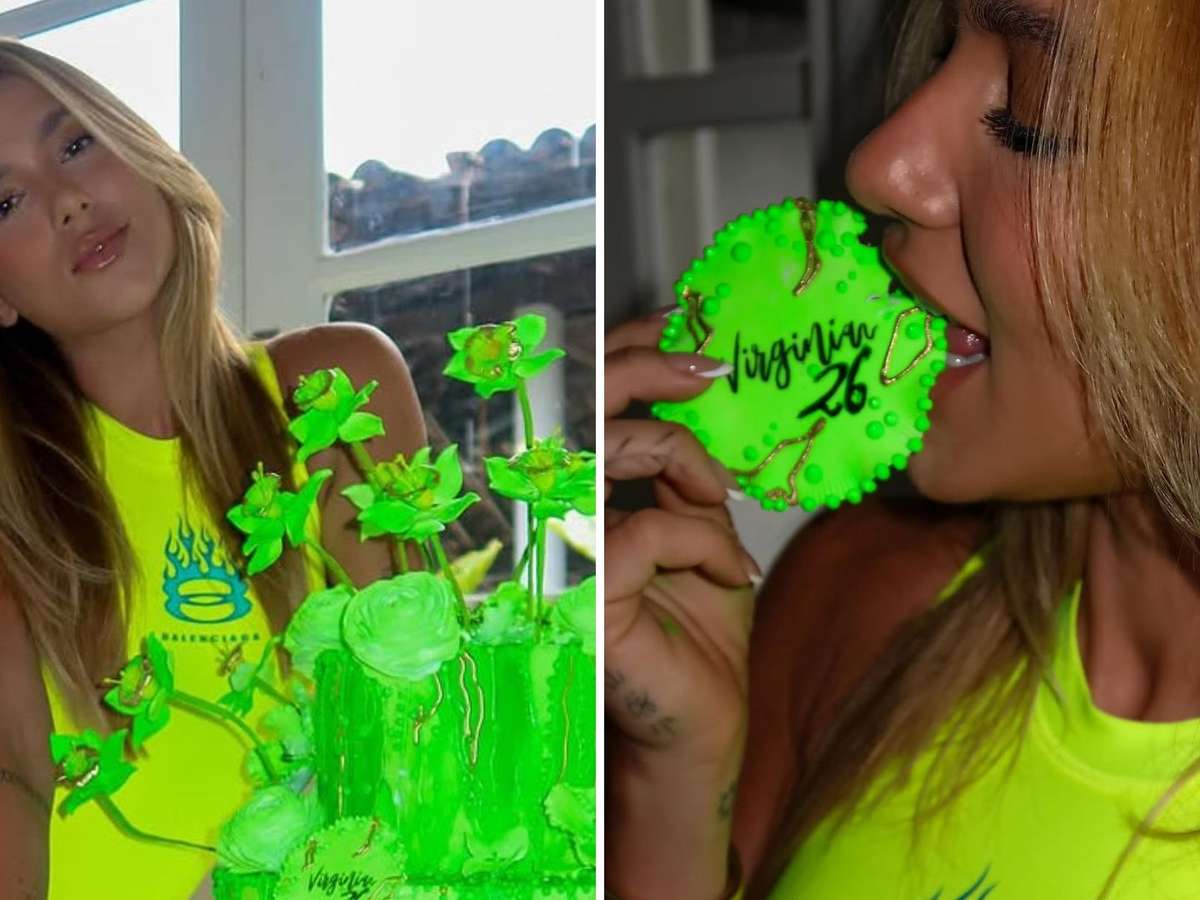 Vestindo um maiô verde neon e posando ao lado de um bolo da mesma cor, Virginia celebrou o fim de mais um ciclo com um ensaio conceitual publicado no Instagram. "Últimas fotos com 25 anos!!! Me sinto preparada para esse novo ciclo! Pode vir com tudo, 2.6, e que Deus abençoe sempre", escreveu na legenda.