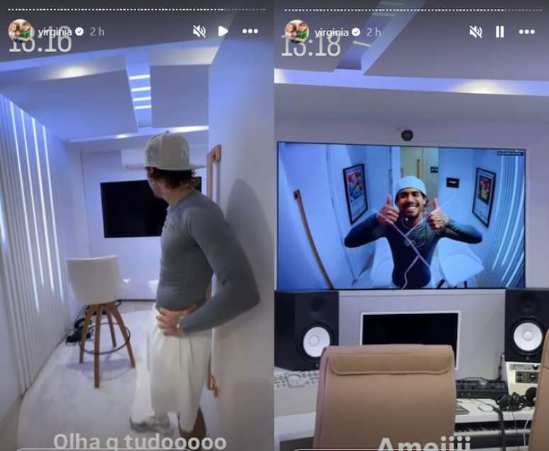 A apresentadora Virgínia Fonseca usou o Instagram para mostrar o estúdio de gravação montado na casa que divide com o marido, o cantor Zé Felipe. O espaço luxuoso conta com três portas para melhor isolamento de som, além de uma antessala com espaço para café e lavabo.