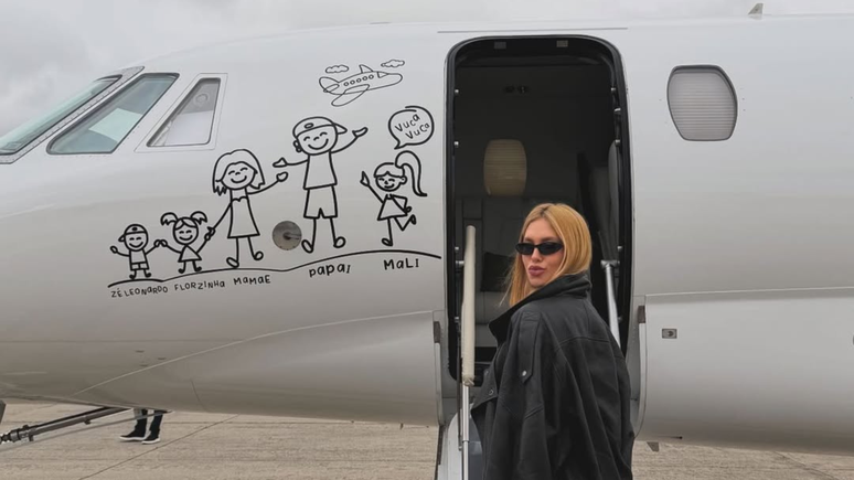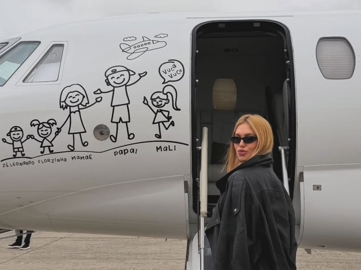 A empresária anunciou a compra da aeronave em março deste ano. Avaliado em até R$ 28 milhões, o jato é estampado com os desenhos de Virginia e Zé Felipe de mãos dadas com os filhos, Maria Alice, 4 anos, Maria Flor, de 3, e José Leonardo, de 1.