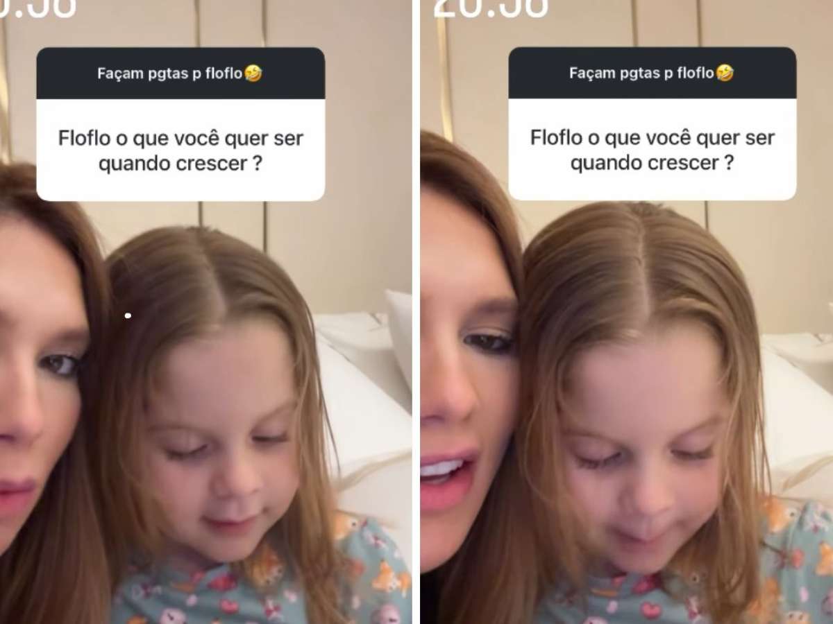 A influenciadora Virginia Fonseca, de 26 anos, se surpreendeu ao ouvir a filha Maria Flor, de 2 anos, dizer que pretendia ser dançarina de Zé Felipe, de 27, quando crescer. O momento ocorreu enquanto elas interagiam com fãs por meio da caixinha de perguntas.