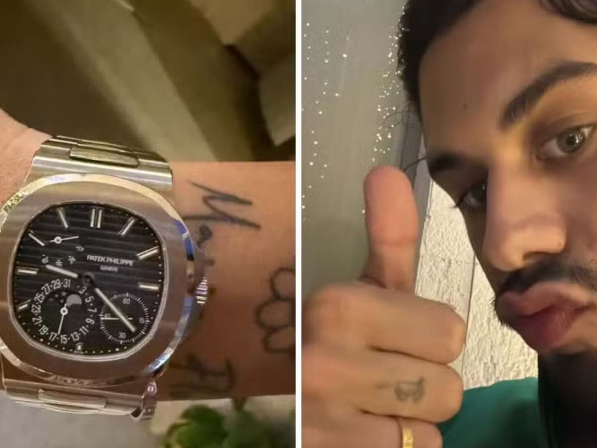 Virginia Fonseca surpreendeu Zé Felipe ao presenteá-lo com um luxuoso relógio Patek Philippe Nautilus 5712, avaliado em R$ 936 mil. "Presente da minha gata. Te amo. Agora só arrumar a hora", brincou o cantor ao exibir o item nesta quinta-feira (21). O modelo é símbolo de status entre celebridades como Lionel Messi, Ed Sheeran e Leonardo DiCaprio.