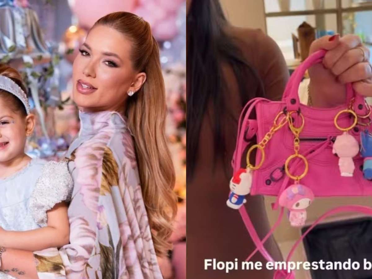 "Precisando de uma bolsa rosa, né, gente? Tô tendo que pegar emprestado da Flor. Só que mostra aqui os berloques dela. Olha isso. Eu peguei emprestada da Flor", brincou a influenciadora nos Stories do Instagram.
