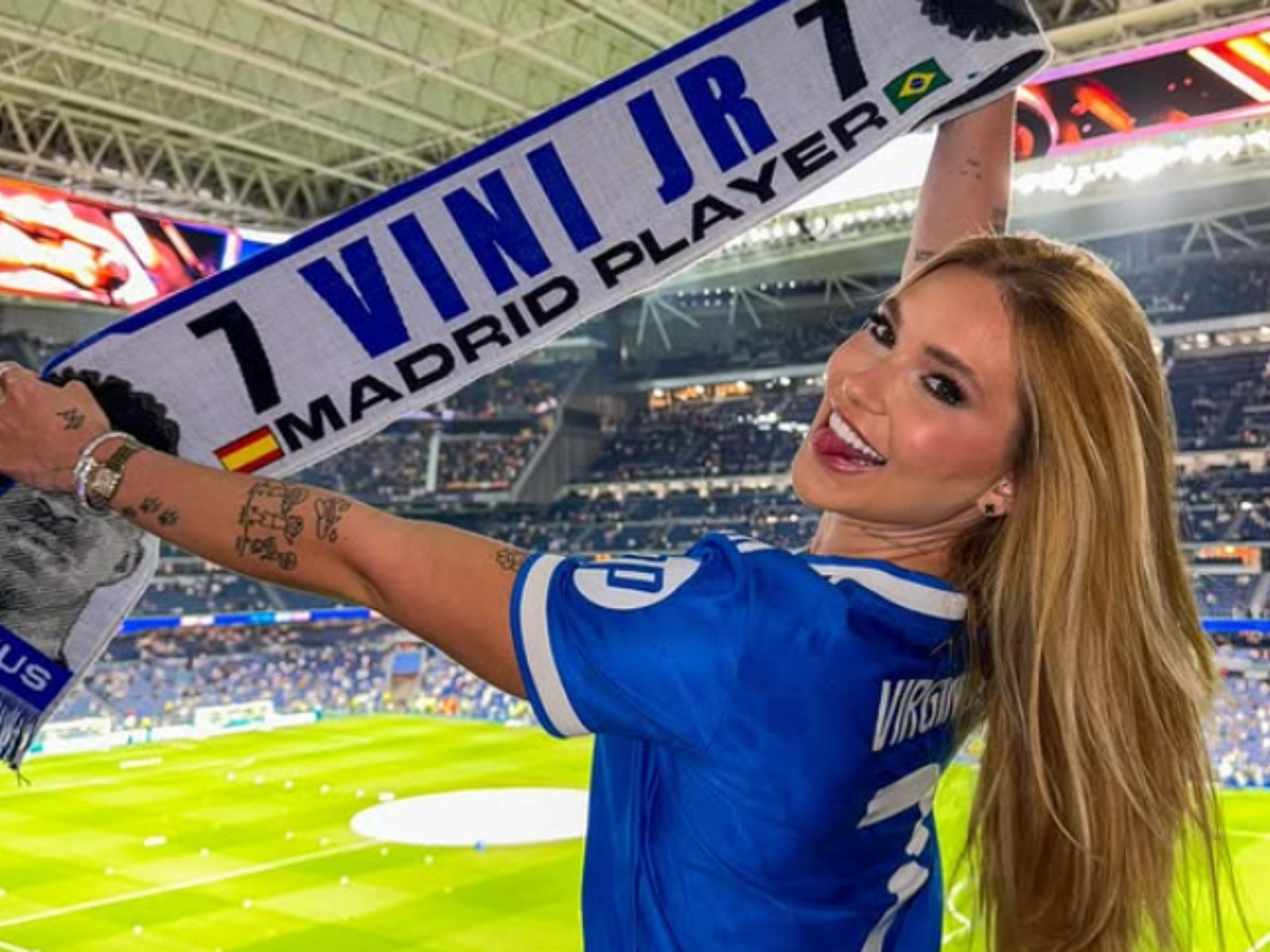 O amor está no ar -- ou seria no Santiago Bernabéu? Virginia Fonseca compartilhou o look para assistir ao namorado, Vini Jr, golear o Valencia por 4 a 0 pelo Campeonato Espanhol. Com uma minibolsa avaliada em mais de R$ 300 mil, a influenciadora foi acompanhada por amigos e familiares no estádio da capital espanhola.
