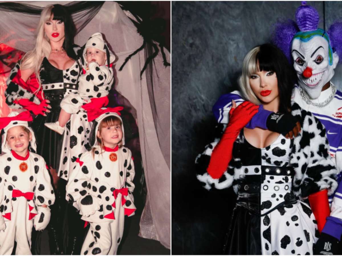 Virginia vira Cruella e filhos se fantasiam de dálmatas para curtir Halloween com Vini Jr em Madri