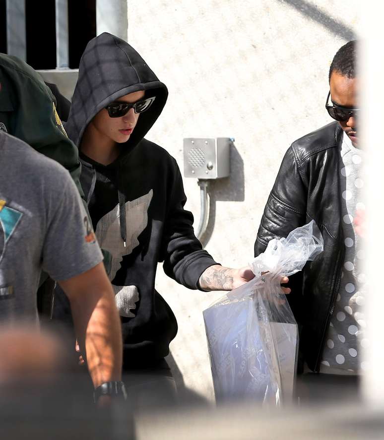 O cantor Justin Bieber acena para fãs ao deixar a cadeia na Flórida; Bieber foi preso após disputar um racha. Ao ser detido, resistiu à prisão e um teste do bafômetro comprovou que ele estava embriagado. Ele pagou fiança de US$ 2,5 mil