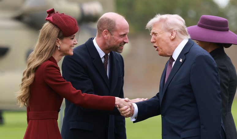 Na sequência, os dois casais caminharam pelos jardins da residência real. O príncipe William, num gesto de gentileza, colocou a mão nas costas de Kate e Melania, conduzindo ambas pela propriedade. Conforme o jornal The Sun, a conversa inicial foi marcada por amenidades.