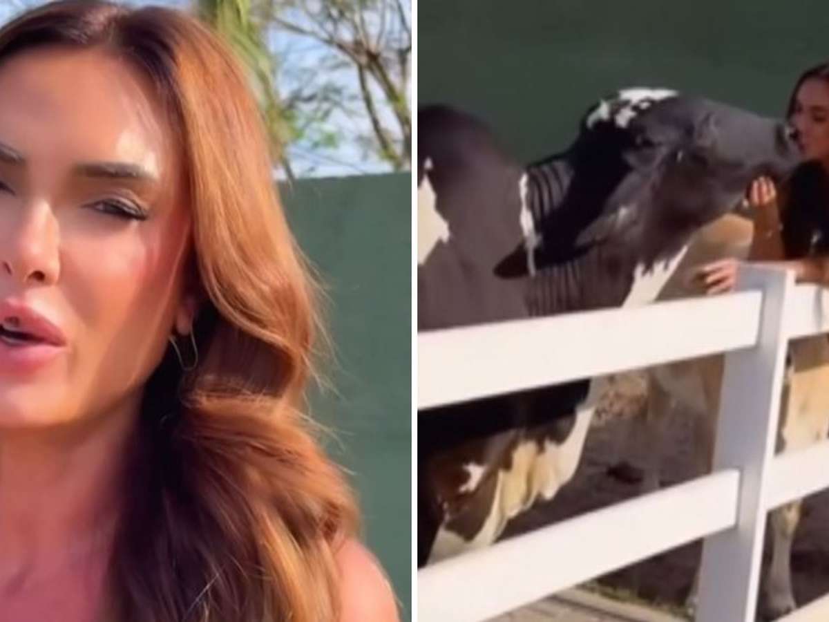 Nicole Bahls beija Anitta, sua vaca de estimação, na boca e deixa internet em choque; veja
