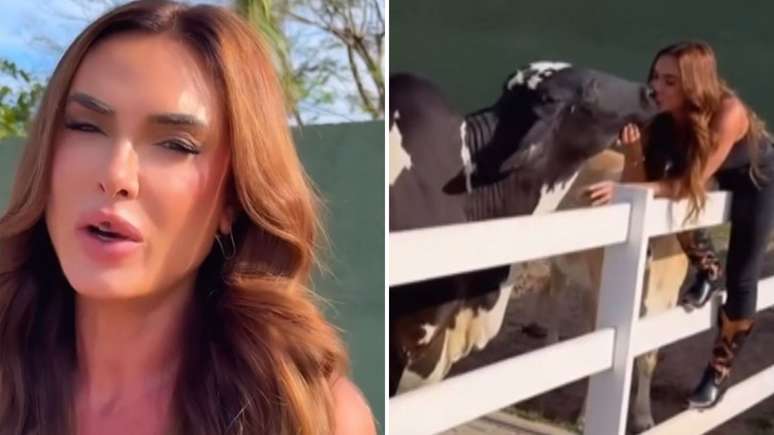 A apresentadora Nicole Bahls, de 39 anos, voltou a roubar a cena nas redes sociais neste domingo (27) ao compartilhar um vídeo em que aparece beijando uma de suas vacas, batizada de Anitta, em seu sítio em Itaboraí, na região metropolitana do Rio de Janeiro.