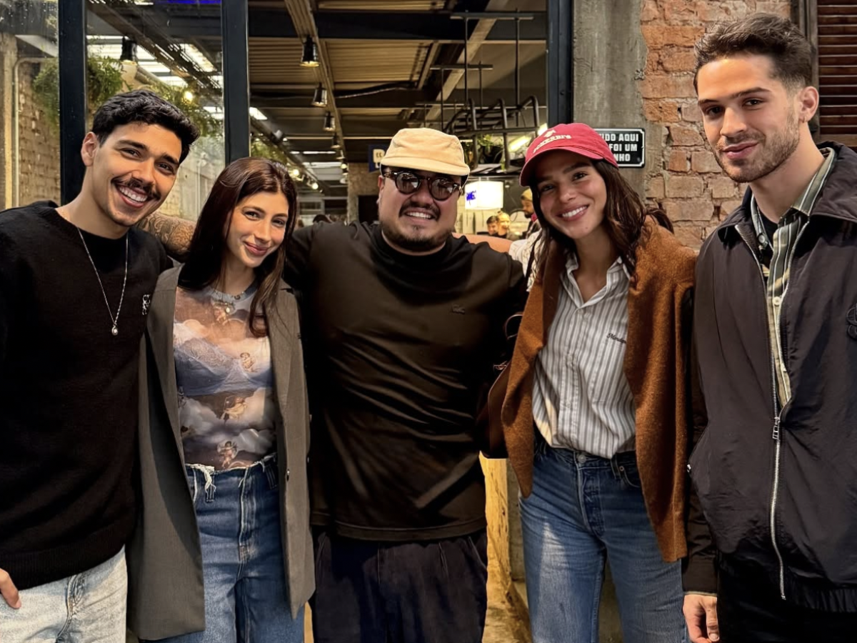 Atores posaram com um casal de amigos e com o chef do estabelecimento paulistano