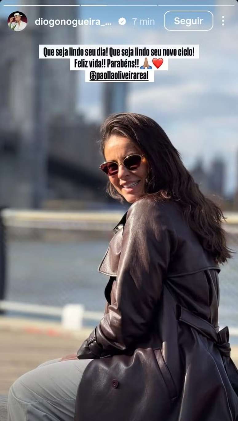 Diogo Nogueira, ex-namorado da atriz, fez questão de homenageá-la nos Stories do Instagram. O sambista publicou uma foto de Paolla sorridente e escreveu: "Que seja lindo seu dia! Que seja lindo seu novo ciclo! Feliz vida!! Parabéns!!"