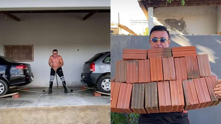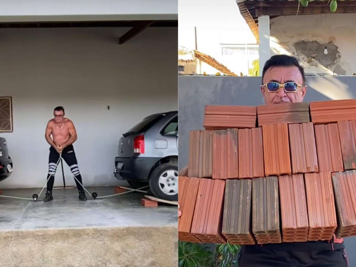 Vovô 'maromba' puxa carros populares e levanta mais de 20 tijolos em rotina de treino; confira