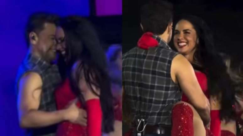 Influenciadora Graciele Lacerda sobe no palco e protagoniza dança 'calorosa' com o marido, o cantor Zezé Di Camargo